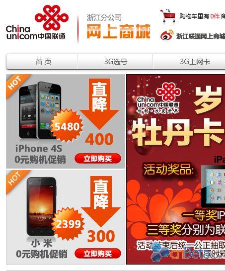 编辑最后更新 2025年10月20日,晚间访问 浙江联通网上商城 发现其中iPhone4S 16G黑色白色合约套餐均有400元的优惠,原价5888的合约套餐现价5488,另外同时降价的还有小米手机的套餐,降价幅度达到300元,让人感觉是联通在针对电信近期的动作做出的反映。 商城地址: http://www.zj186.com/