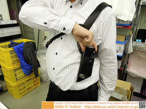 编辑最后更新 2025年11月17日,最近在日本市场有这么一款算是iPhone的周边,产品名称叫做Secert Agent(SEAGPH)——让你能感受到警察风范的iPhone手机配置皮套,甚至还赠送了胡须和鬓角。那么我们先看以下日本记者的拍的照吧: 这款产品是制造商为iPhone制造的仿真警用枪支皮套,通过佩带,