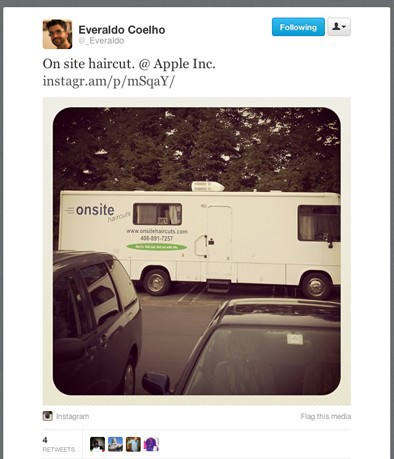 苹果UI设计师Everaldo Coelho在Twitter上上传了一张照片。照片是苹果停车场上的车厢理发店。据悉,停车场上的这辆车免费为员工提供理发服务。硅谷企业文化中,各个公司都有非常不同的企业文化。苹果严苛的企业文化和谷歌轻松开放的路线就像是硅谷的两个极端。谷歌员工可享受免费餐点、按摩、健身房等福利,在苹果,公司招待的唯一一餐是新进员工报到第一天的午餐。