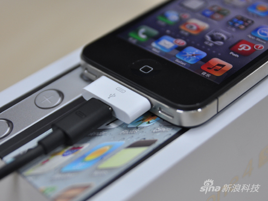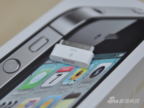 唯一不同的是,这次的行货iPhone 4S标配一个苹果30针接口转microUSB的适配器,这样用户就能使用常见的microUSB数据线和充电器来进行同步或充电。各位网友在购买时请注意这个小配件,它是放在数据线底下的。
