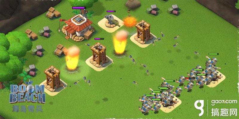 《?海岛奇兵》是由国际知名厂商Supercell出品一款战斗策略游戏。在游戏中,您将与邪恶的黑暗守卫展开一场史诗般的战争。美丽的岛屿被敌人入侵,,解放被奴役的岛民,探索未知的群岛。在这场战争中,您要合理排兵布阵,打造最强阵容。还要记得不断升级你的作战系统,突袭敌人的基地,享受战利品。攻打由黑暗守卫控制的数百个独特岛屿基地。探索远古神像的神秘力量。