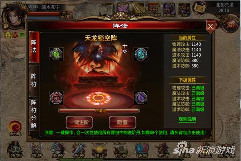 阵法等级越高,可穿戴的阵符种类越多,而阵符提供的加成足以应付一些刁钻BOSS带来的灼烧、冰冻、中毒等附加伤害,上山打怪,不可不备啊!