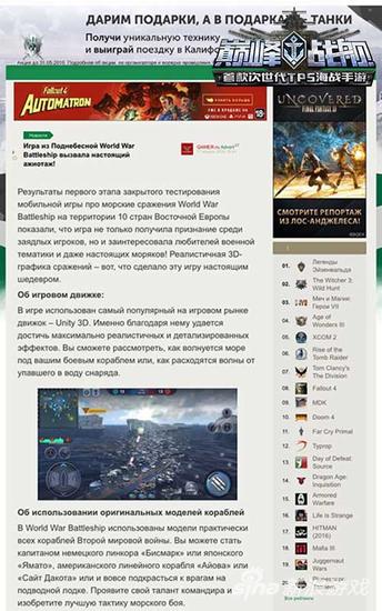 俄罗斯权威游戏媒体Gamer.ru对《巅峰战舰》进行了深度报导