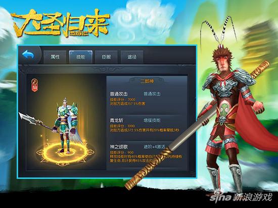 咱们通过《大圣归来手游》中的神秘商店和世界BOSS商店,辛苦换回二郎真君之后,他也会用碾压对手的强大实力回报我们的努力。且不说那杀伤力大的普通攻击,光是增援技能青龙斩和进阶技能神之颂歌,那都是分分钟打的对手鬼哭神嚎。拥有这些强大技能的同时,二郎真君大人的各项加BUFF的羁绊也不含糊,攻击防御样样来,真可谓居家旅行扫荡副本的不二选择!