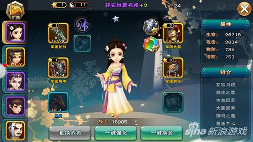 在数量众多的武将当中,每个都拥有自己的独特特性定位,大致可分为防御型、暴击型、平衡型、治疗型和控制型五种,玩家可以根据每个武将的站位、输出范围、培养难度等特点进行组合搭配。甚至还可以根据技能特效来培养特定方向的阵容,比如吴国的火烧连营队,蜀国的强力爆发队,魏国的四维平衡队都是玩家的智慧结晶。不过阵容相生相克不断变化,始终没有最强的阵容,只有最强的玩家,打造自己的专属团队才是真正的强者!