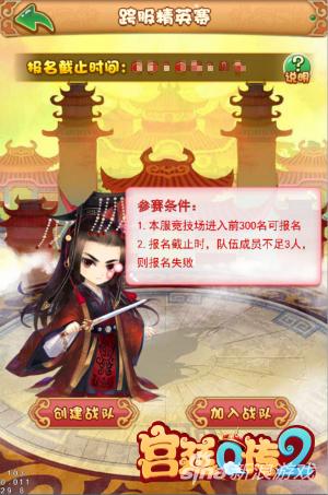 跨服精英战热闹来袭!随着各位小主们宫斗力的不断提升,本服内的夺宝和竞技场已经无法满足小主们日益骚动的野心了,称霸后宫,走上人生巅峰,享受万人膜拜,想想是不是还有些小激动呢?别急,《宫廷Q传》满足你的后宫称霸之梦。
