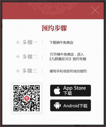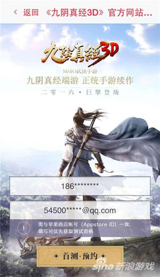 第四步:打开安装好的免商店,首屏即是我们的预约哦~点击首测预约图片,进入《九阴真经3D》预约专题,填写您的手机联系方式,然后只要轻轻点击[首测·预约]按钮即可完成预约