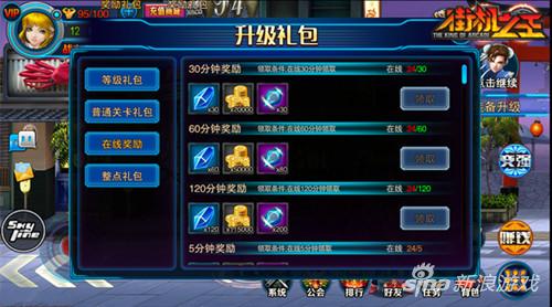 玩游戏不花钱,是大部分玩家的一贯目标。《街机之王》深知玩家的心理,在游戏设定上紧贴玩家的这种心理。在游戏内为只要玩家保持在线状态,就可以频繁的领取在线礼包,满足在游戏内大部分消费需求。另外还有等级礼包和整点礼包,玩家在前期升级阶段,基本上不用大额人民币充值。