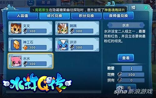 《水浒Q传手游》的神兽总共有4只,分别是水水、浒浒、文文和跳跳,可别看四只神兽们外形Q萌,各种属性那可都不是盖的。神兽们站在召唤兽的最顶端,获取难度自然不会低。只有凑齐了足够的神兽碎片,才能召唤神兽!神兽碎片可通过使用水仙花来挑战隐藏糖果副本获得,想要赢得逆天的神兽,就赶紧来挑战吧!
