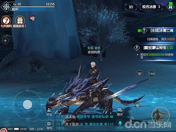不过相较于美术在人物外形上的用心,游戏的地图却显得有些“偷工减料”,这么说并不是因为地图狭小或者单一,事实上作为一款 MMO,游戏地图开阔且多样,孤寂的冰原、荒凉的大漠、巍峨的自由城、幽深的森林,玩家可以在 2.5D 与 3D 视角之间自由切换,360°无死角跑地图。但事实上开阔的地图却因为缺少细节而显得没有生机,甚至人物竟然可以穿过大部分的障碍物,并且无法和场景互动,比如踏过河流不会出现哪怕一丁点水波。然而尽管美术放弃了这么多细节,游戏包依然被塞成了 338MB,这对于手游来说,真的是一个让玩家亚历山大的大小。