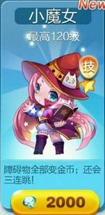 小魔女:技能是把障碍物全部变成金币,还有擅长三连跳,那么小魔女用来爆分、三连跳党来说,小魔女绝对是一个值得入手的人物。